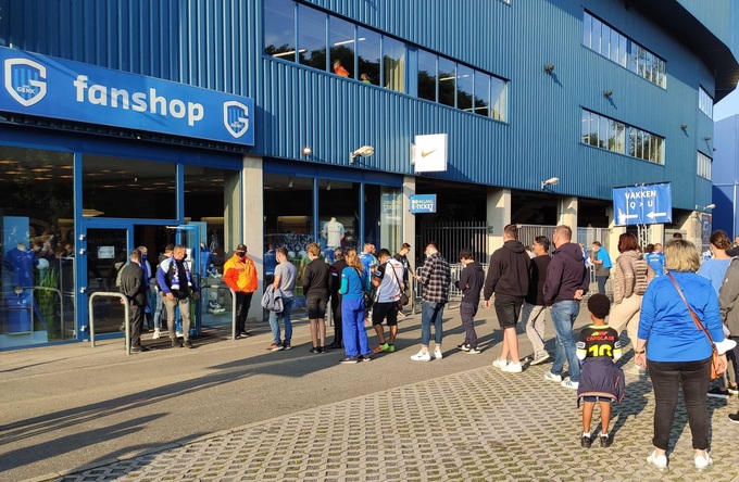 За два часа до начала матча «Генк» – «Шахтер» произошел забавный случай. Группа украинских журналистов совершала обход по периметру стадиона, целенаправленно двигаясь в направлении к фан-шопу. Возле входа работник клубного магазина сообщил шокирующую новость о том, что внутрь пускают лишь болельщиков «Генка». И действительно, сразу же после отказа нам внутрь пустили фанов «сине-белых», которые пришли с атрибутикой клуба. Через час очередь уже была солидной.