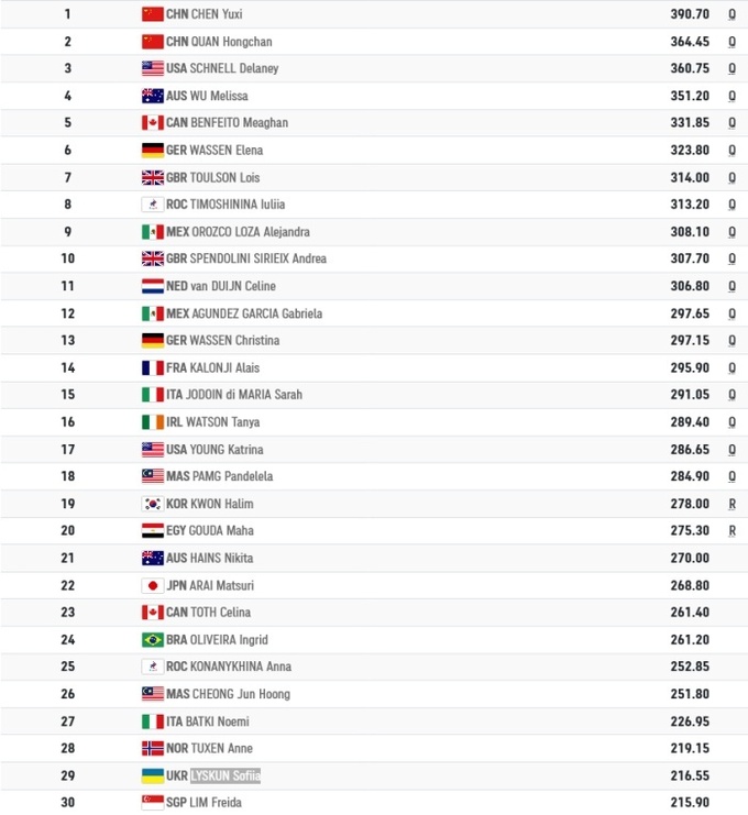 Украинка не сумела квалифицироваться в полуфинал, показав предпоследний 29-й результат.