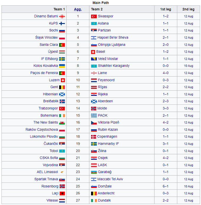 «Колос» из Ковалевки на своем поле разошелся миром с «Шахтером» из Караганды (0:0). Победитель этой пары выйдет на лучшего в противостоянии «Спартака» из Трнавы и «Маккаби» Тель-Авив, где тоже была зафиксирована ничья (0:0).