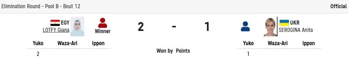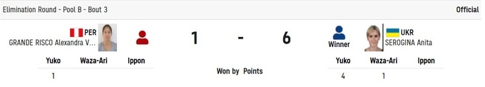 В рамках группового раунда украинка выиграла первую схватку, победив соперницу из Перу со счетом 6:1.