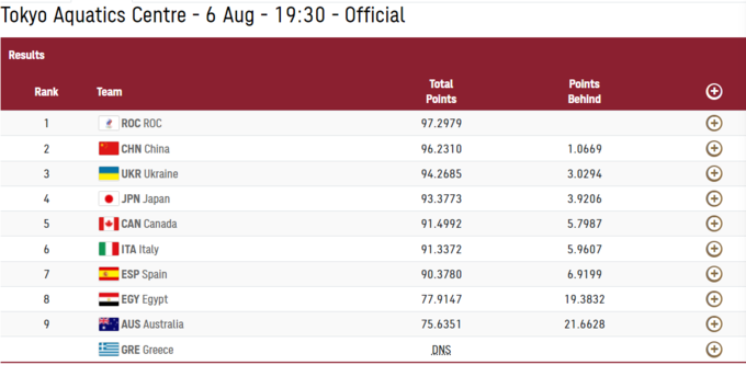 На Олимпийских играх 2020 в Токио завершились соревнования по командному артистическому плаванию в технической программе.