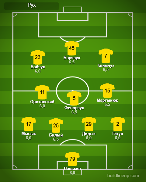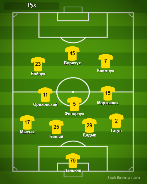 «Рух»: Панькив, Мартынюк, Мысик, Федорчук, Билый, Климчук, Бойчук (Кузык, 62), Дидык (Карасюк, 52), Борячук (Кондраков, 73), Гагун, Ориховский (Кухарук, 74)