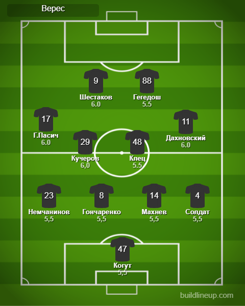 Замены «Верес»: Сергийчук - 5,5, Е.Пасич - 5,5, Полюлях - 5,0, Панасенко - 5,0, Гечев - 5,0.