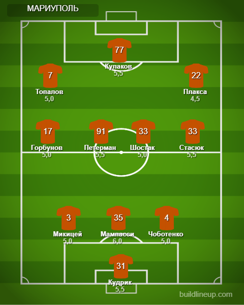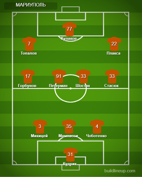 «Мариуполь»: Кудрик, Чоботенко, Микицей (Драмбаев, 46), Мампасси, Стасюк, Шостак, Петерман (Клименко, 63), Горбунов (Вьюнник, 63), Плакса (Хромей, 46), Кулаков, Топалов (Мыкытышин, 67).