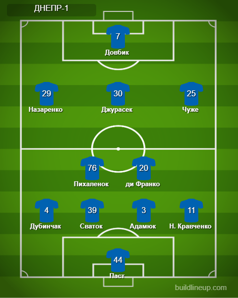 «Днепр-1»: Паст, Н. Кравченко, Адамюк, Сваток, Дубинчак, Пихаленок (Когут, 72), Ди Франко (Игнатенко, 66), Назаренко (Русин, 72), Джурасек, Чуже, Довбик (Ярмолюк, 89).