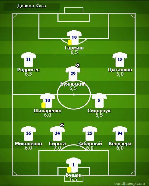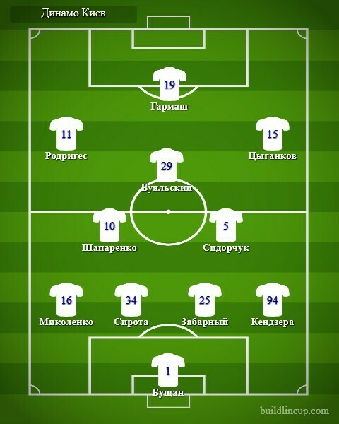 «Динамо»: Бущан, Миколенко, Забарный, Сирота, Кедзёра (Тымчик, 69), Сидорчук, Шапаренко, Родригес (Де Пена, 68), Цыганков (Караваев, 68), Буяльский (Леднев, 85), Гармаш (Кулач, 77).