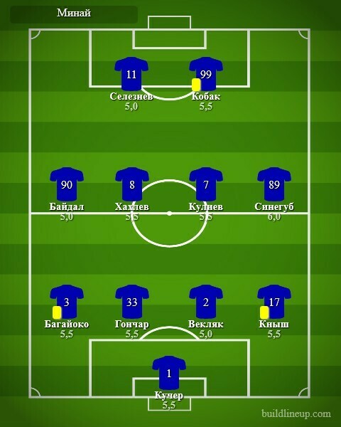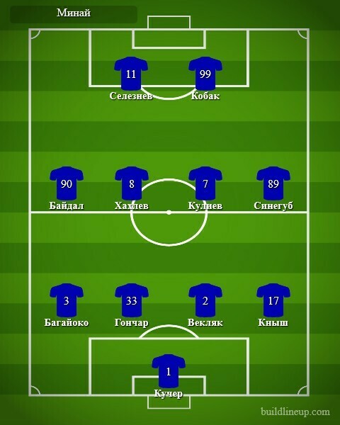 «Минай»: Кучер, Багайоко, Векляк, Гончар (Горин, 80), Кныш, Синегуб, Кулиев, Байдал (Ахмедзаде, 57), Хахлёв (Петрусенко, 64), Кобак (Билоног, 57), Селезнев (Вишневский, 57).