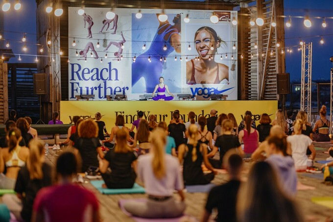 В этом году, уже традиционный ежегодный йога ивент Nike прошел под слоганом - Reach Further ( «Достигай большего»). Вдохновляющее тренировка прошла 5 августа на видовом крыши в старом центре Киева.