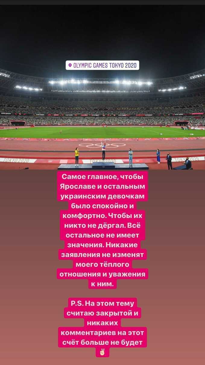 «Самое главное, чтобы Ярославе и остальным украинским девочкам было спокойно и комфортно. Чтобы их никто не дергал. Все остальное не имеет значения. Никакие заявления не изменят моего теплого отношения и уважения к ним.