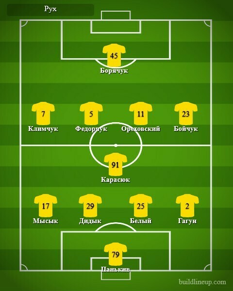 «Рух»: Панькив, Карасюк, Мысык, Федорчук, Белый, Климчук, Б.Бойчук (Кузык, 83), Дидык, Борячук (Кондраков, 76), Гагун, Ориховский (Кухарук, 94).