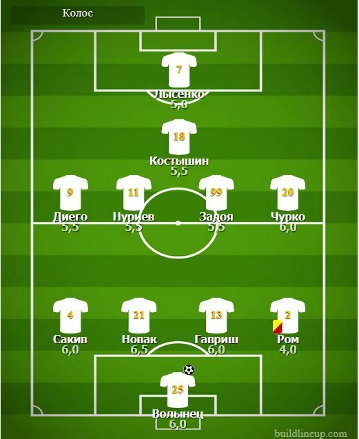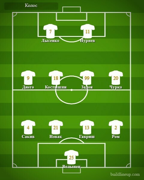 «Колос»: Волынец, Ром, Гавриш, Новак, Сакив, Задоя (Нгамба, 56), Диего (Золотов, 60), Чурко, Нуриев (Милько, 26), Костышин (Ильин, 46), Лысенко (Ситчинава, 46).