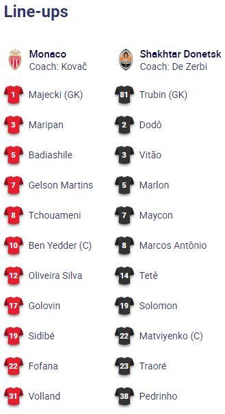 Монако – Шахтер. Де Дзерби назвал основу. Стартовые составы команд