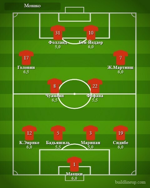 Замены «Монако»: Жеан Лукас – 5,5; Диоп – 5,5; Дьятта – 5,5; Боаду – 5,5.