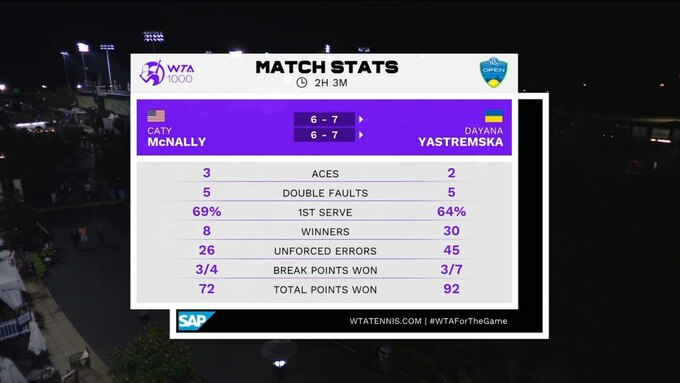 Даяна Ястремская (Украина) – Кэти Макнелли (США) [WC] – 7:6 (7:3), 7:6 (7:1)