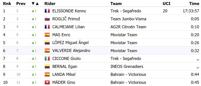 Обладатель красной майки Рейн Таарамяе попал в завал ближе к финишу, и потерял лидерство в общем зачете. Новым лидером стал француз Кенни Элиссонд из команды «Trek Segafredo». Украинец Марк Падун финишировал в пелотоне и поднялся на четыре позиции в общем зачете – теперь он 21-й.