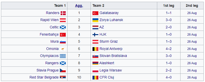 19 августа прошли первые матчи 4–го раунда квалификации Лиги Европы (другое название – раунд плей-офф).
