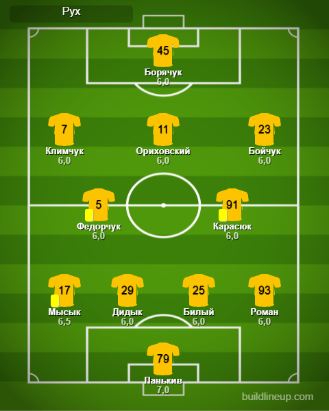 «Рух»: Панькив, Мысык, Дидык, Билый, Роман (Кузык, 73), Карасюк, Федорчук, Ориховский (Кухарук, 69), Климчук, Бойчук (Мартынюк, 62), Борячук.