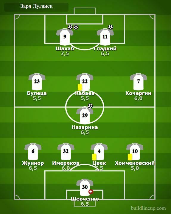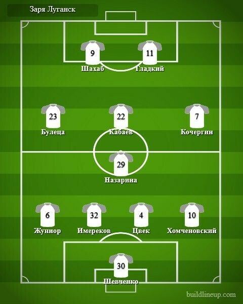 «Заря»: Шевченко (Мацапура, 49), Хомченовский, Цвек, Имереков, Жуниор Рейс, Назарина, Кочергин (Фримпонг, 62), Булеца (Лунёв, 62), Кабаев, Шахаб (Руфати, 70), Гладкий (Кристиан, 62).