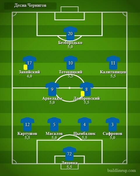 Замены «Десны»: Болбат - 5,5; Будковский - 5,0; Шевцов - 5,5; Дегтярёв - б/о.