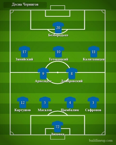 «Десна»: Литовка, Сафронов, Цымбалюк, Масалов (Шевцов, 77), Домбровский, Арвеладзе (Болбат, 46), Тотовицкий (Дегтярёв, 86), Калитвинцев, Картушов, Завийский, Безбородько (Будковский, 46).