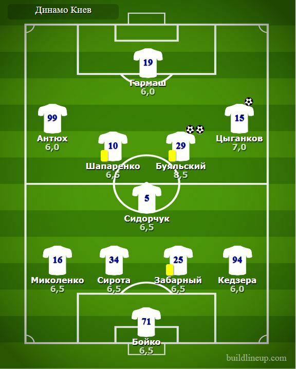 «Динамо»: Бойко, Миколенко, Сирота (Тымчик, 67), Забарный, Кедзёра, Сидорчук (Шепелев, 67), Шапаренко, Буяльский, Антюх (Леднев, 78), Цыганков (Караваев, 68), Гармаш (Шкурин, 46).