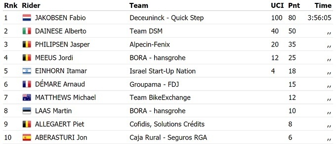 Голландский гонщик команды «Deceuninck Quick Step» Фабио Якобсен стал победителем восьмого этапа Вуэльты-2021. В финишном спринте он опередил Альберто Дайнезе и Яспера Филипсена.