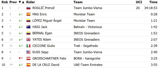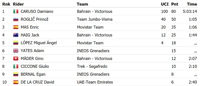 Вуэльта-2021. Карузо выиграл девятый этап, Роглич укрепил лидерство