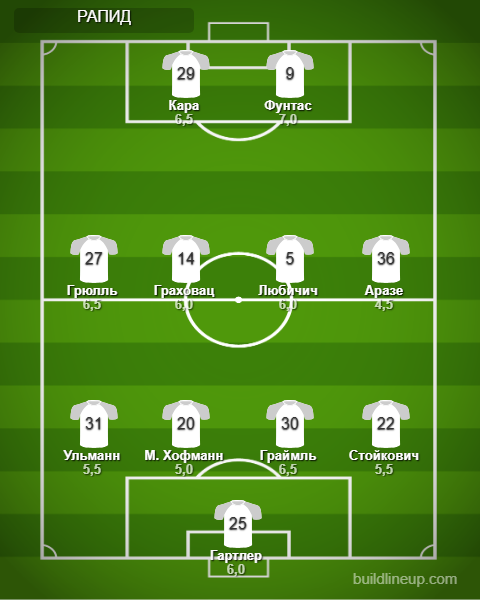 Замены «Рапида»: Шик - 5,5, Петрович - 5,0, Шустер - 5,5, Виммер - 5,5, Кнасмюлльнер - 5,5.