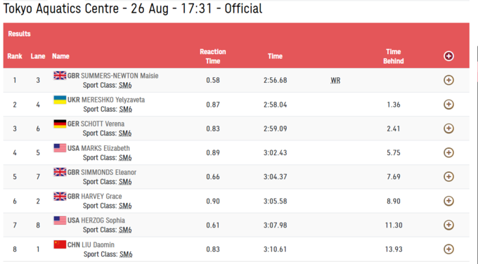 29-летняя Елизавета Мерешко стала серебряной призеркой в плавании на дистанции 200 метров комплексом в классе SM6. Накануне она выиграла золото в заплыве на 50 метров вольным стилем.