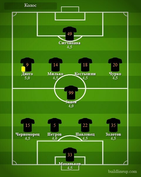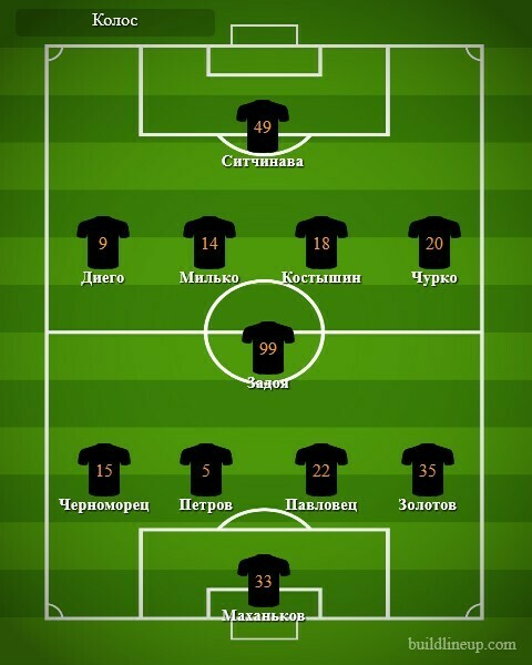 «Колос»: Маханьков, Золотов, Павловец, Петров, Черноморец, Милько (Нгамба, 29), Задоя (Богданов, 30), Костышин (Нуриев, 46), Сантос Диего, Чурко (Данфа, 46), Ситчинава (Лысенко, 64).