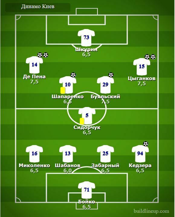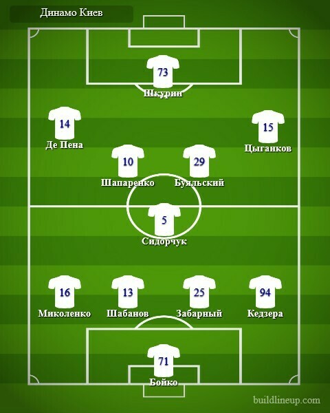 «Динамо»: Бойко, Кендзера (Караваев, 61), Забарный, Шабанов, Миколенко, Сидорчук (Шепелев, 62), Буяльский (Леднев, 69), Шапаренко, Де Пена (Вербич, 61), Цыганков, Шкурин (Рамирес, 46).