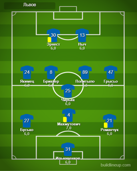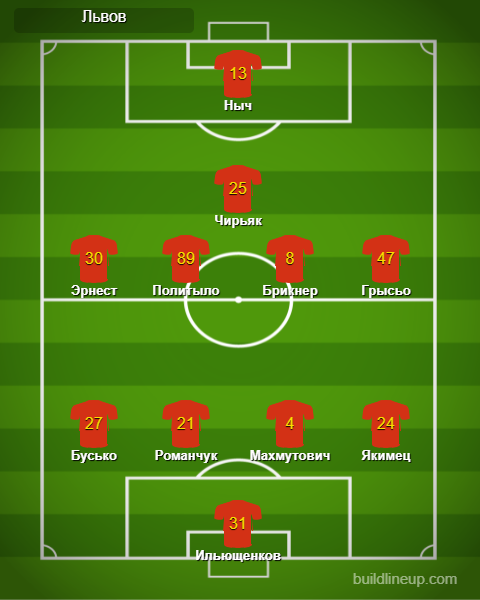 «Львов»: Ильющенков, Романчук (Крушинский, 81), Махмутович, Якимец, Политыло, Брикнер (Альваро, 69), Бусько, Эрнест, Чирьяк (Довгий, 69), Ныч (Ренан, 59), Грысьо (Семенив, 59).