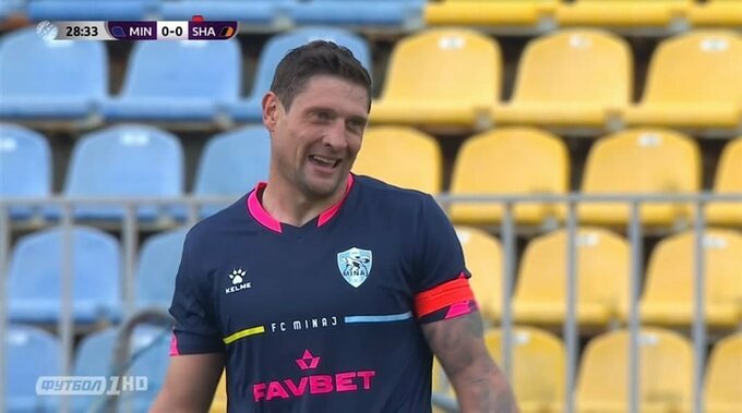 Форвард хозяев поля Евгений Селезнев провел матч без нашивки УАФ с текстом «Слава Украине! Героям Слава!»