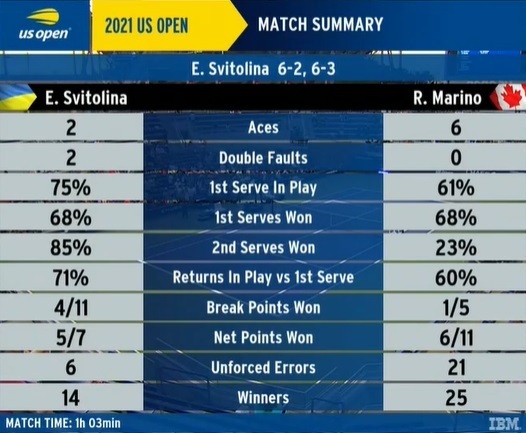 Элина Свитолина (Украина) – Ребекка Марино (Канада) – 6:2, 6:3