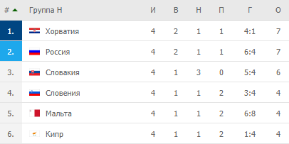 В группе H сборная России разошлась миром с командой Хорватии (0:0).