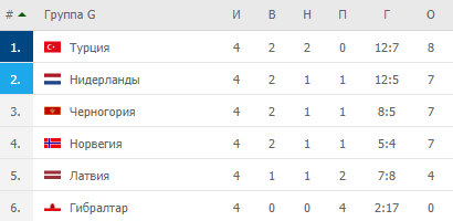 Турция на последних минутах потеряла победу в игре с Черногорией (2:2). Латвия переиграла Гибралтар (3:1) с голом Андрейса Цыганикса, бывшего игрока луганской «Зари».