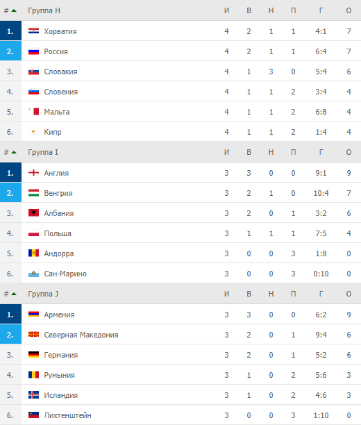 Турнирные таблицы квалификации ЧМ-2022. Все результаты игрового дня