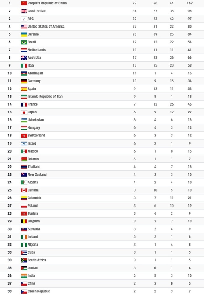 Всего украинцы завоевали уже 84 медали (20 золотых, 39 серебряных и 25 бронзовых), занимая в общем зачете 5-е место.