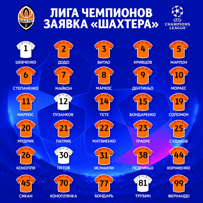 «Шахтер» подал официальную заявку со списком игроков для участия в групповом раунде Лиги чемпионов.