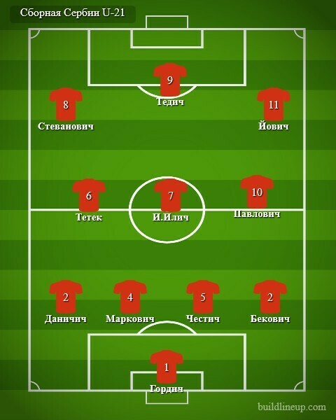Сербия U-21: Гордич, Даничич, Маркович, Честич, Бекович (Видосавлевич, 73), Тетек, И.Илич, Павлович (Милосавлевич, 56), Сиеванович, Тедич, Йович (Гаврич, 80).