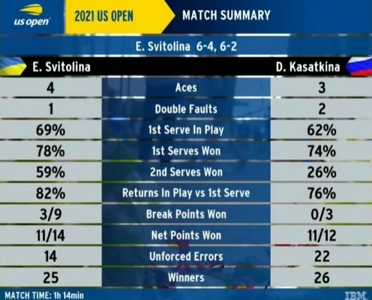 Элина Свитолина (Украина) – Дарья Касаткина (Россия) – 6:4, 6:2