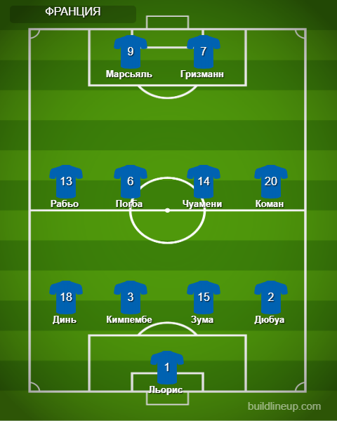 Франция: Льорис, Дюбуа, Зума, Кимпембе, Динь, Чуамени (Верету, 83), Погба, Рабьо, Коман (Диаби, 63), Гризманн, Марсьяль (Бензема, 63).