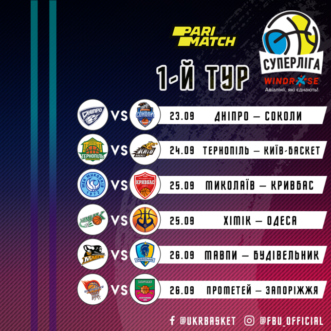 Федерация баскетбола Украины оголсила список матчей первого тура баскетбольной Суперлиги.