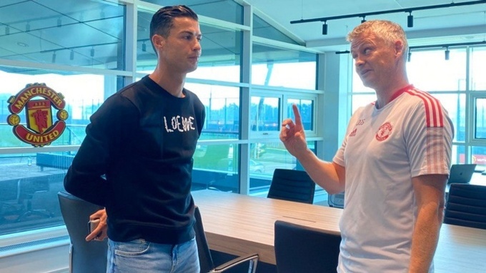 Роналду пообщался с тренером Оле-Гуннаром Сульшером и провел занятие с игроками, которые не разъехались по своим сборным.