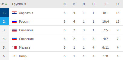 Группа H. Хорватия удержала лидерство, Россия забила два гола Мальте