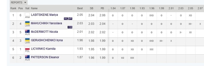 Ирина Геращенко не преодолела высоту 1.99 метра и финишировала 4-й.