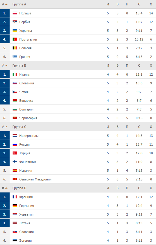 Победитель дуэли между Украиной и Россией сыграет затем в 1/4 финала против лучшего в матче Польша – Финляндия.