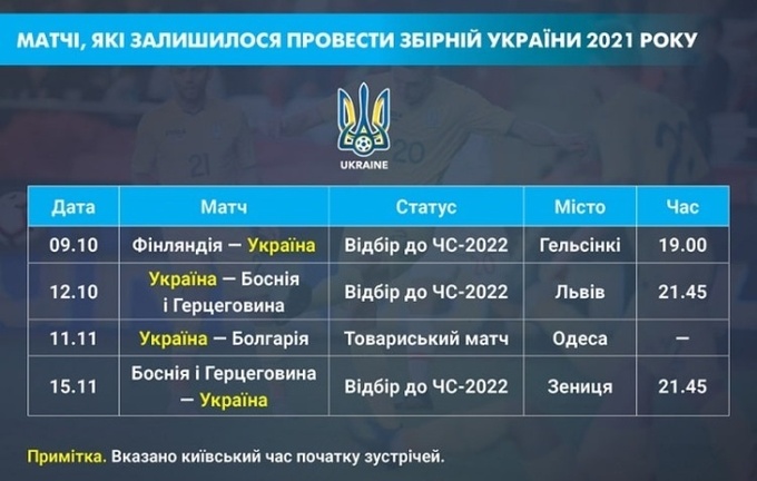 До конца года сборной Украины осталось провести только четыре матча: три поединка отбора ЧМ-2022 и контрольная встреча.
