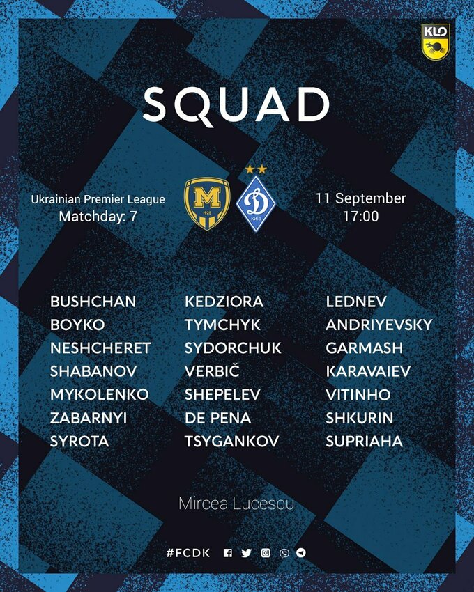 Главный тренер Мирча Луческу взял на игру 21 футболиста.