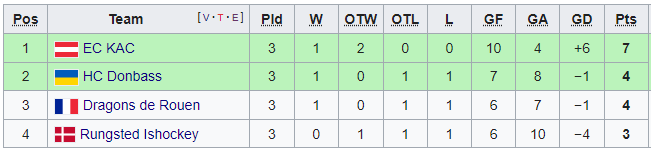 Турнирная таблица группы G